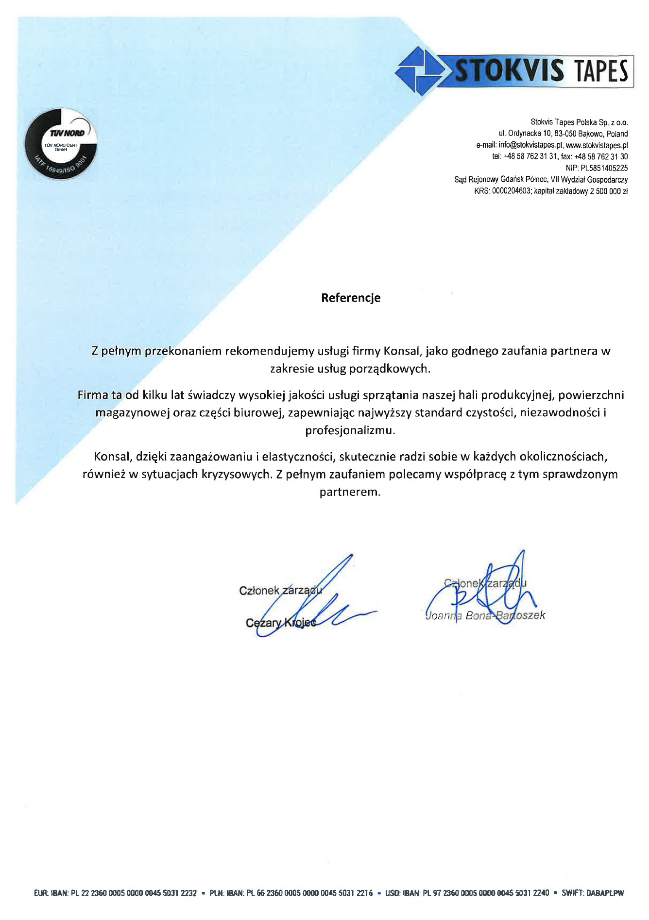 - Zaufali nam klienci z całej Polski. Nasza jakość broni się sama. Zachęcamy do zapoznania się z referencjami od naszych Partnerów z Gdyni, Gdańska, Olsztyna i Katowic.