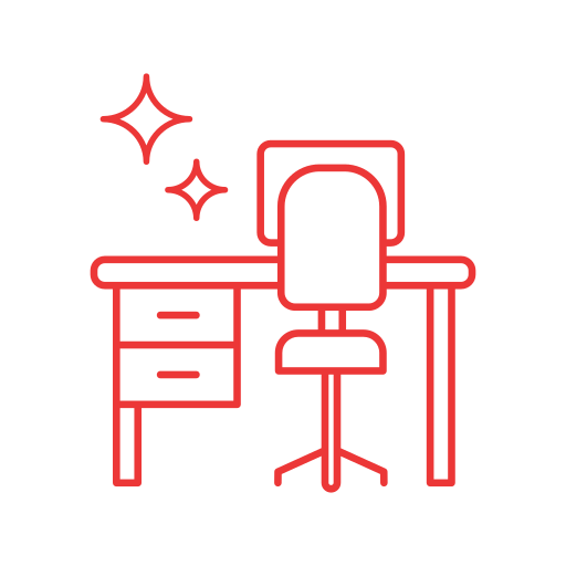 Biurko to Twoja strefa dowodzenia. Wycieramy kurz z mebli, szaf i parapetów. Dezynfekujemy klamki i włączniki światła – bo higiena to zdrowie.